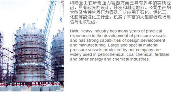 蘇州海陸重工股份有限公司位于江蘇省張家港市開發(fā)區(qū),是國(guó)內(nèi)一流的節(jié)能環(huán)保設(shè)備的專業(yè)設(shè)計(jì)制造企業(yè),目前并已初步形成鍋爐產(chǎn)品、大型壓力容器、核電設(shè)備、低溫產(chǎn)品、環(huán)保工程共同發(fā)展的業(yè)務(wù)格局。公司創(chuàng)建于1956年,注冊(cè)資本51640萬元,占地面積近50萬平米。公司下設(shè)八個(gè)控股子公司,一個(gè)余熱鍋爐研究所,在瑞士、北京、武漢、南京、上海、杭州、廣州等地設(shè)立分支機(jī)構(gòu),擁有雄厚的研發(fā)實(shí)力。公司秉承“科技領(lǐng)航、業(yè)界先鋒”的發(fā)展理念,注重研究廢熱、余熱利用和環(huán)境保護(hù)相結(jié)合的新技術(shù)研發(fā),自主設(shè)計(jì)能力居同行前列;公司承擔(dān)過國(guó)家863計(jì)劃,江蘇省科技成果轉(zhuǎn)化專項(xiàng)資金,榮獲國(guó)家科技進(jìn)步二等獎(jiǎng),產(chǎn)品擁有核心自主知識(shí)產(chǎn)權(quán)并取得專利50多項(xiàng);公司推行國(guó)際先進(jìn)的管理體系標(biāo)準(zhǔn)和認(rèn)證,擁有 A級(jí)鍋爐制造許可證,A1、A2、A3級(jí)壓力容器設(shè)計(jì)和制造許可證,取得了民用核承壓設(shè)備制造資格許可證、美國(guó)機(jī)械工程師學(xué)會(huì)(ASME)“S”、“U”鋼印,通過了ISO9001質(zhì)量體系認(rèn)證、健康體系認(rèn)證和14000環(huán)境體系認(rèn)證;公司設(shè)備先進(jìn),裝備精良,專業(yè)嚴(yán)謹(jǐn)?shù)闹圃炖砟畲蛟斐銎焚|(zhì)非凡、質(zhì)量一流的“海陸”品牌聲譽(yù)。